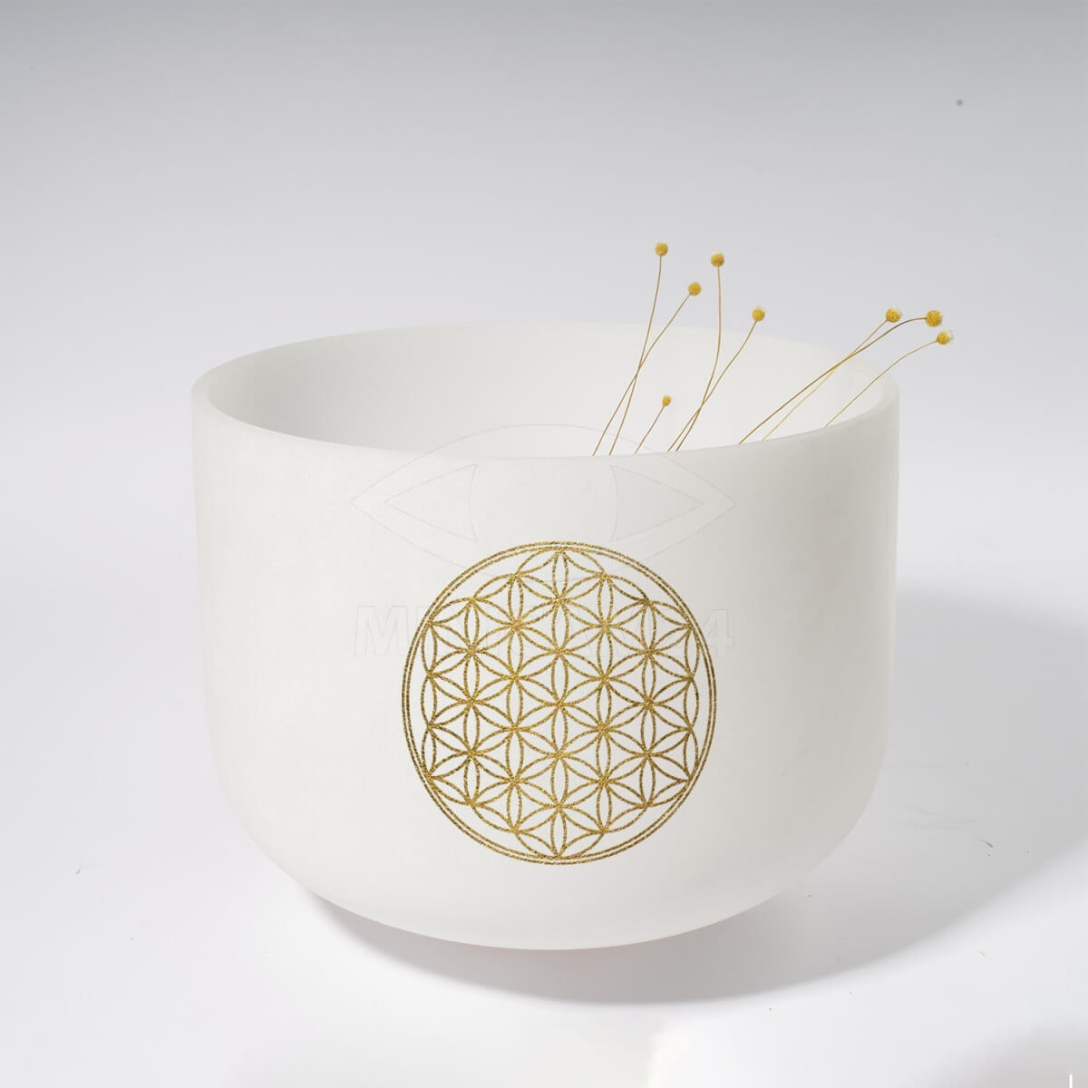 Чаша украшена символом Цветка жизни, который в сакральной геометрии представляет собой универсальный символ гармонии и единства мироздания. Этот символ способствует уравновешиванию полушарий мозга, усиливая связь между интеллектом и интуицией, а также помогает найти баланс между мужским и женским началом (инь и ян).