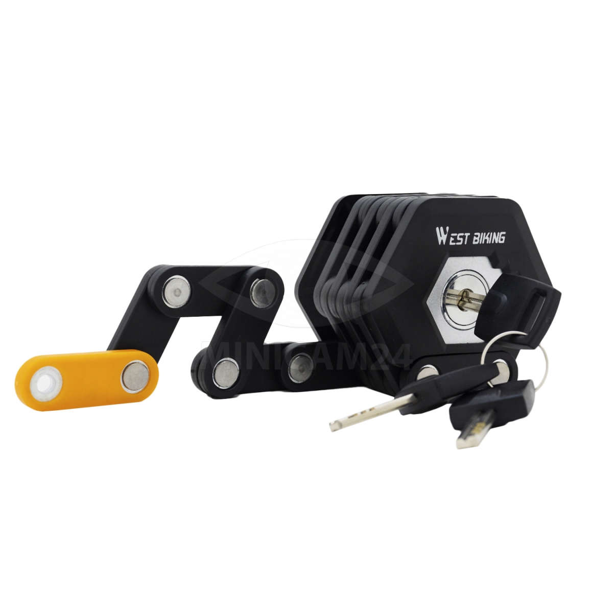 Складной велосипедный замок - это суперудобное решение, обладающее способностью складываться в компактную форму и при этом обеспечивать высочайший уровень безопасности в тяжелых условиях эксплуатации. Компактная форма нашего замка позволяет занимать гораздо меньше места, чем традиционный U-образный замок, что делает его самым практичным и в то же время очень надежным замком. У данного складного замка есть ряд преимуществ: портативность и компактность позволяет его легко носить с собой, имеет надежную конструкцию, обеспечивает максимальную защиту от кражи.